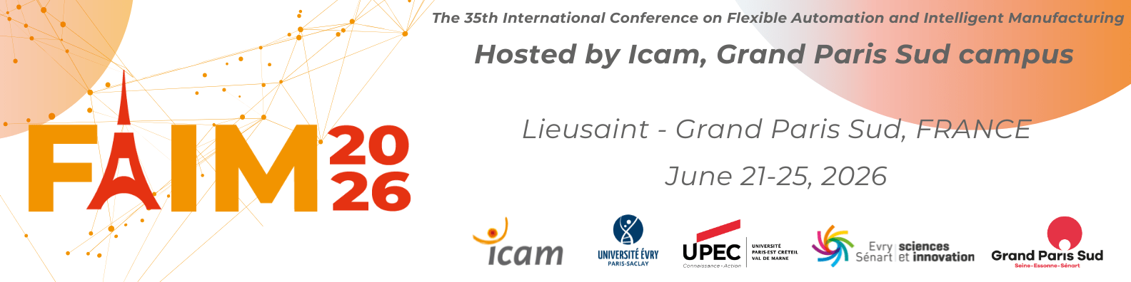 FAIM 2026 will be jointly organized in France by Icam Grand Paris Sud campus, the University of Évry (part of Paris-Saclay University), Paris-Est Créteil University (UPEC), and the Évry-Sénart Sciences and Innovation association (ESSI), with the support of the Grand Paris Sud conurbation.